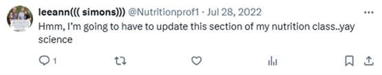 And then there is the remarkable case of this single X-post prompting a lecturer of human nutrition to commit to unquestionably propagate this false message to their students…