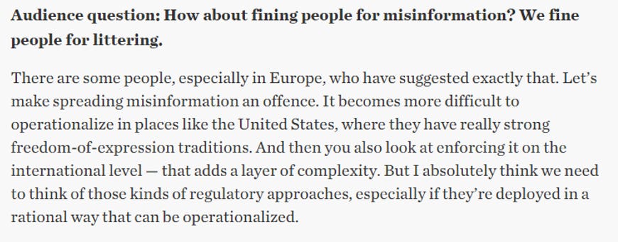 “But I absolutely think we need to think of [fining people for misinformation]” - Timothy Caulfield -