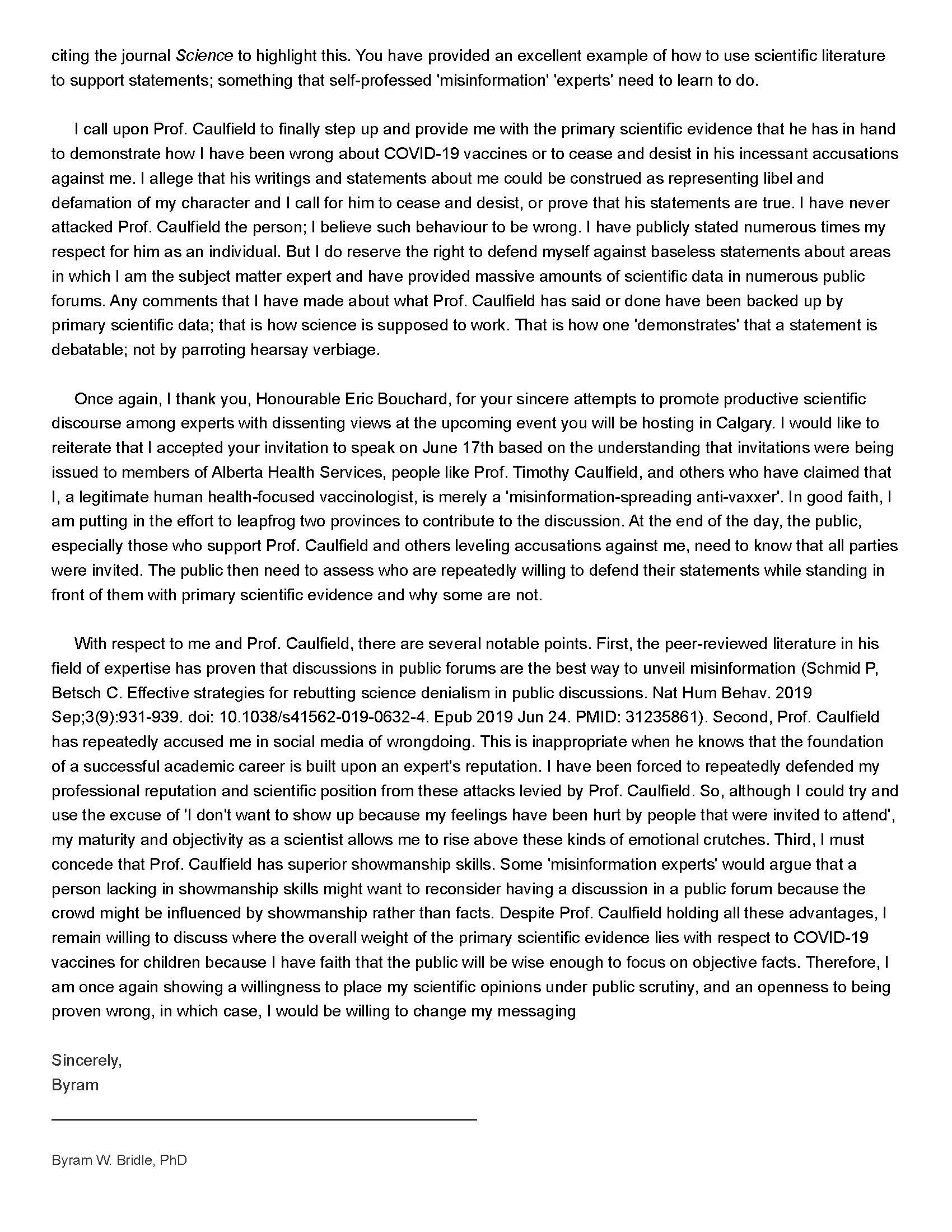 Of concern to me is that Prof. Caulfield has doubled down on his accusations against people speaking at this event, which includes me. A successful academic career is built upon a pristine reputation. So, those who insist on accusing me of misleading the public while constantly wielding, at best, cherry-picked or hearsay evidence, and at worst, mere personal speculation, should not be surprised that I reserve the right to defend my professional reputation.