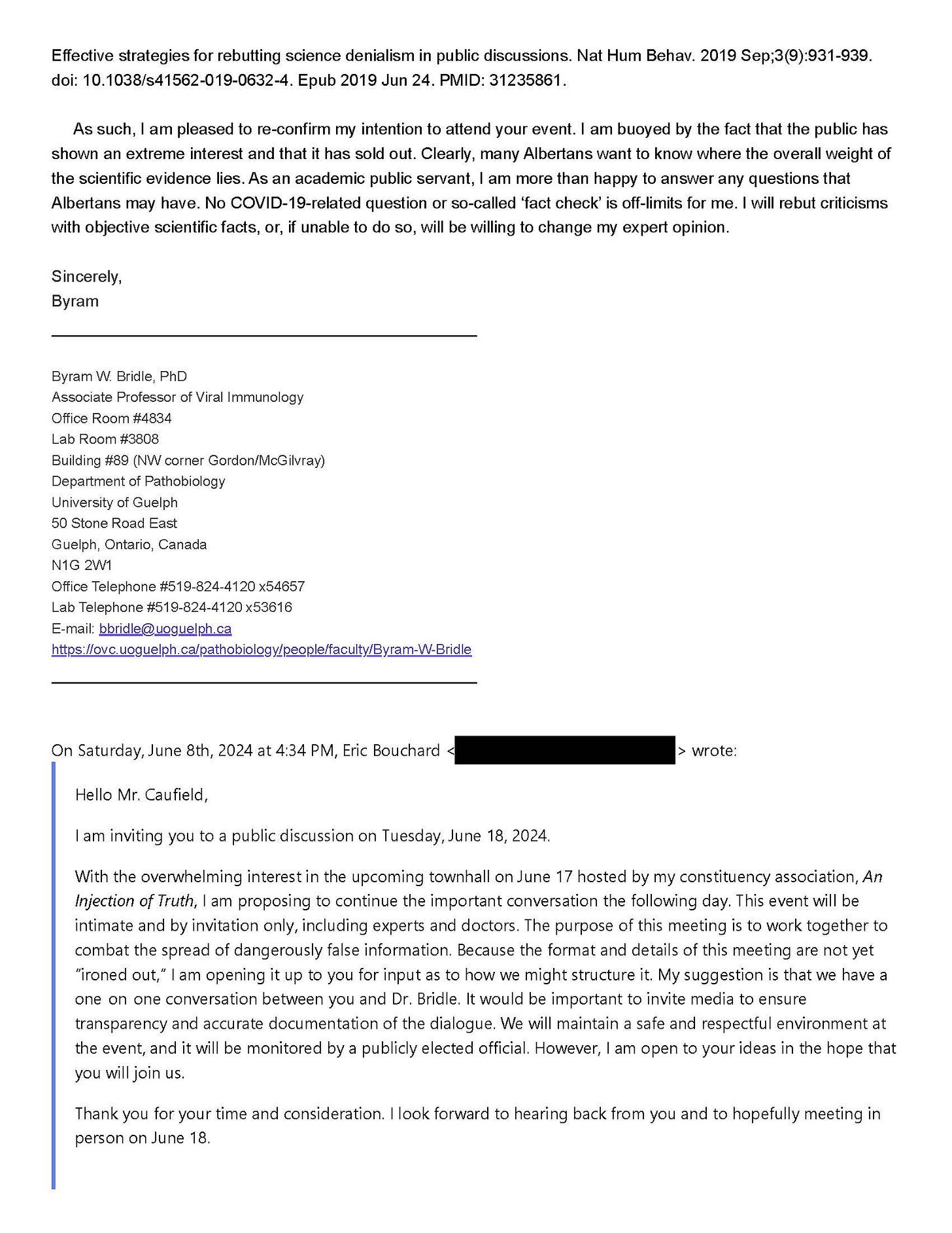 I was recently invited to speak on June 17th at a public town hall being hosted by a member of the legislative assembly in Calgary, Alberta, Canada. I accepted, knowing that many people who have accused me of spreading ‘misinformation’ were being invited. This included an invitation being extended to Prof. Caulfield. Knowing that I carry with me a mountain of scientific evidence, and a mature and professional academic acumen, I accepted. Once again, I will place my professional opinions on the line, subjecting them to public scrutiny to help make scientific truths accessible to all who seek them.